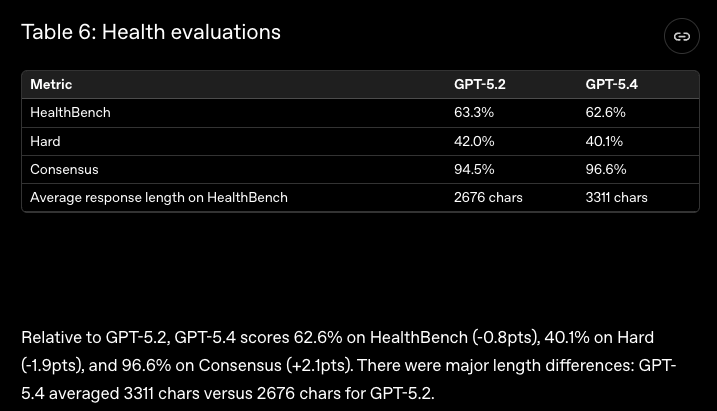 OpenAI’s GPT-5.4 Thinking release looks strong for agentic use, but it is not a step forward for healthcare by OpenAI’s own HealthBench metric. Results on both HealthBench Consensus and the HealthBench Hard track come in slightly below GPT-5.2, and it is still unclear which model will back ChatGPT Health (which I still do not have access to).